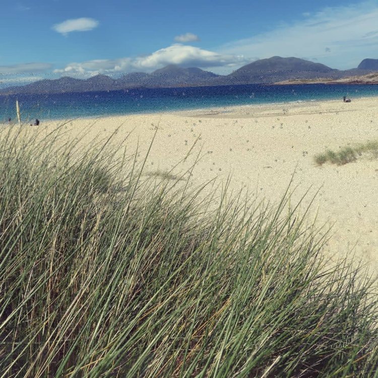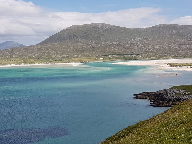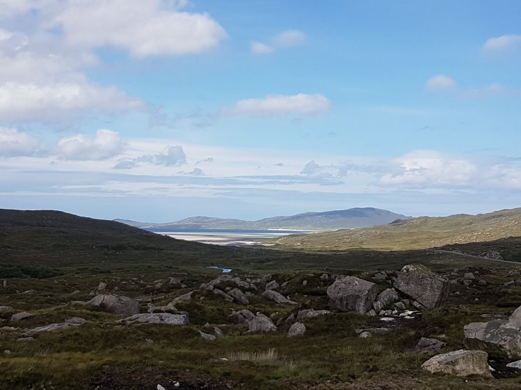 We arrived in the miniature town of Tarbert at about 10am. My Parents decided to buy some of the iconic Harris gin from the Isle of Harris distillery, I had a sausage butty from a local bbq happening at the Tarbert pier and we visited the Harris Tweed shop. I see this profession in a new light now after watching how the cosy material was formed in the blackhouses. I bought my Mum a late birthday present and we returned to the car to travel to our next destination.