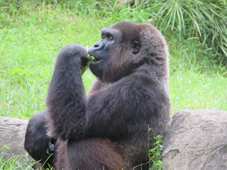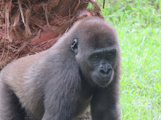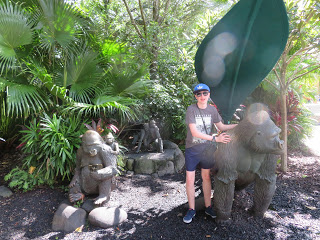As soon as security was complete, (why do they have to search the bags, the manual way?) We entered the wilderness of the gardens. We were going to head straight for Cobras Curse but got a bit sidetracked. We went past the American alligators & then saw the gorilla sanctuary was open. So we decided to see them. The chimps were sitting staring at us through the window, firstly, then we saw the gorillas. Their big brute size made them a threat to us if the glass wasn’t there. Even though they had power, they were quite peaceful. They just lay in the grass and ate. The baby ones were only mucking around and being a nuisance for their mother. They were incredible. The dad was on the other side, using his mighty right arm as a pillow. He reminded me of King Kong.