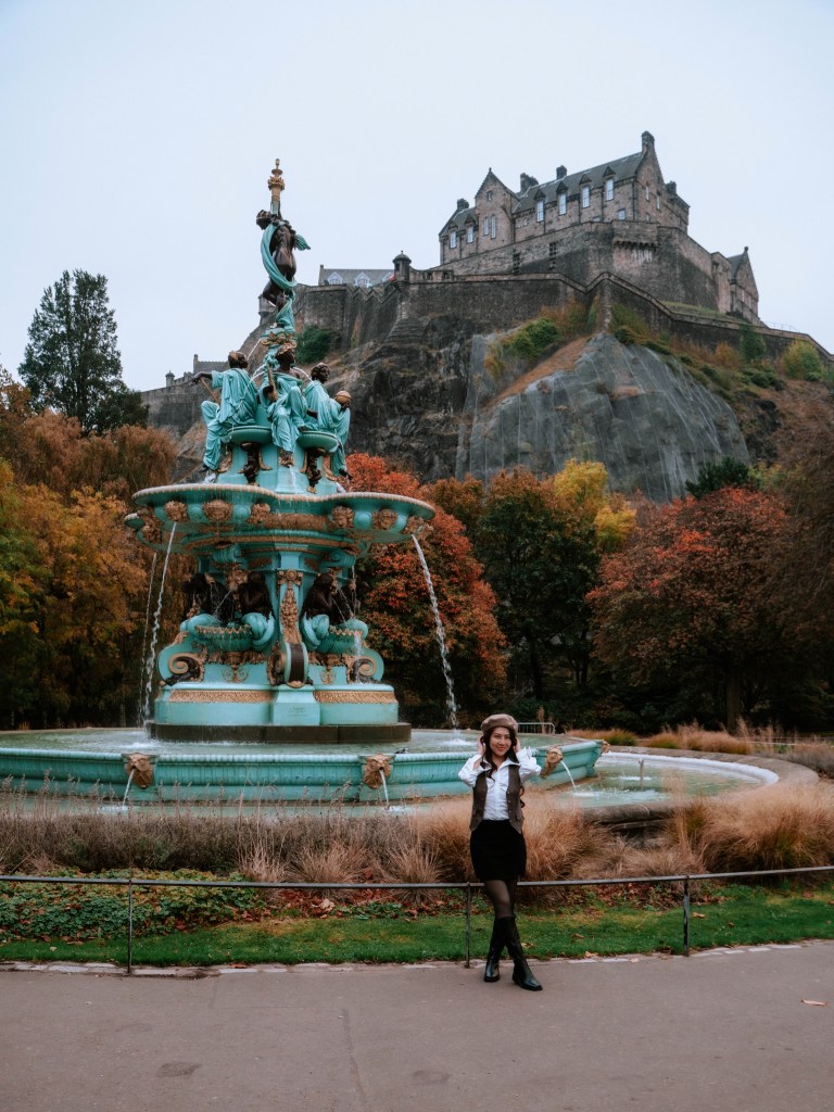 Located at the western end of Princes Street Gardens, the fountain offers one of the most iconic views in Edinburgh, with Edinburgh Castle rising dramatically in the background.